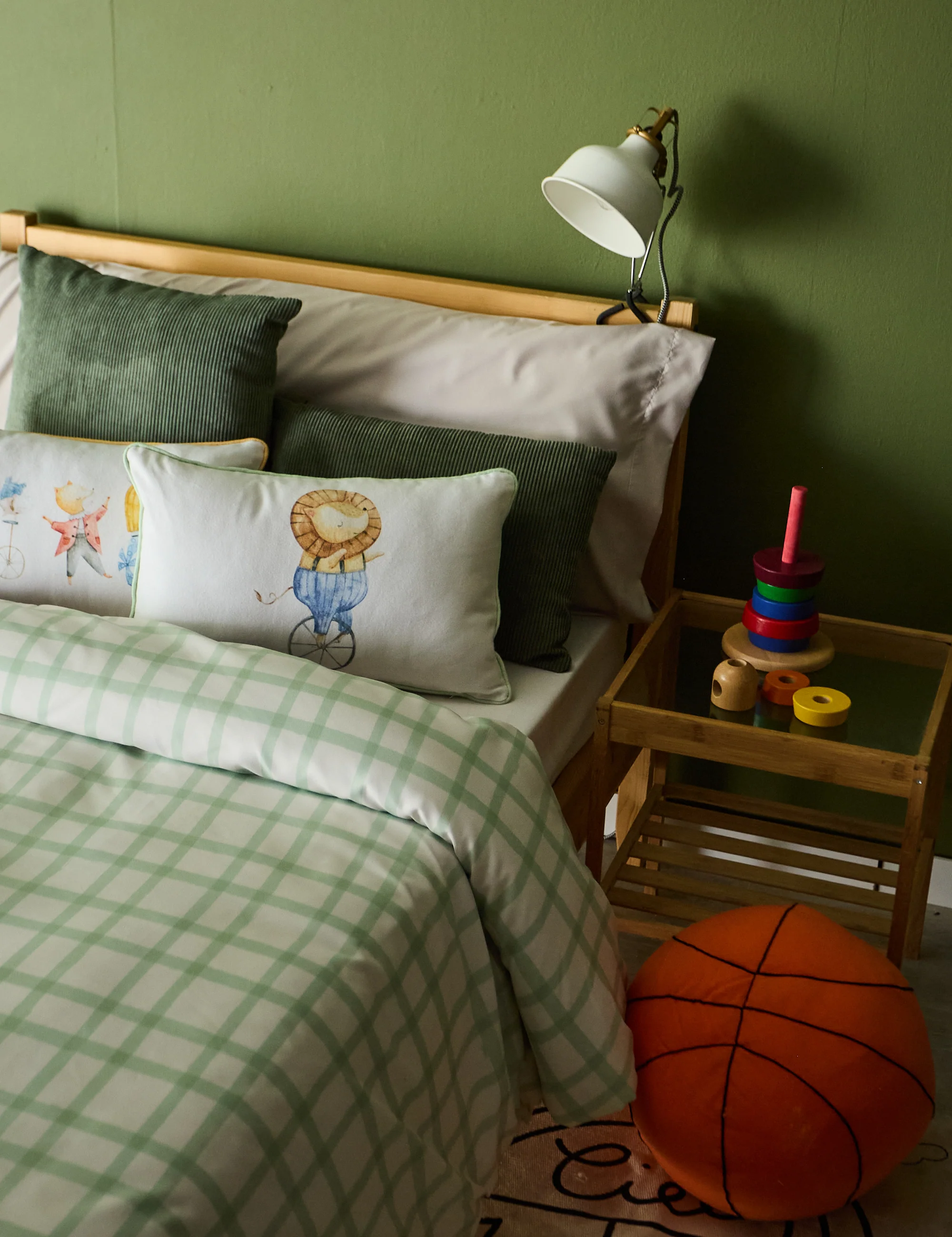 Crea un ambiente acogedor y elegante en la habitación de tu pequeño con esta funda nórdica infantil de cuadros verdes.